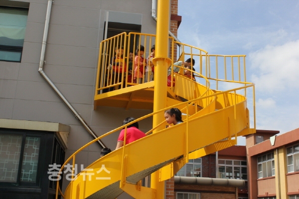 충남도교육청(교육감 김지철)은 전국 최초로 학교시설에 비상피난 미끄럼틀을 설치해 비상시 보다 빠른 탈출을 확보할 수 있는 선진국형 안전시설 확보에 앞장서고 있다.