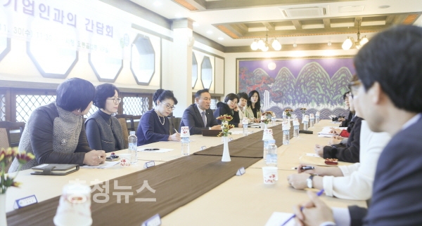 충남 천안시는 30일 시청 상황실에서 여성기업인과의 간담회를 열고 여성기업인들의 건의사항을 청취했다.