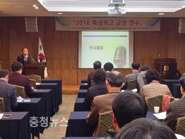충남도교육청(교육감 김지철)은 태안 리솜오션캐슬에서 29일부터 30일까지 충남 특성화고․마이스터고의 취업중심 교육 과정 운영을 위한 취업역량강화 학교장 연수를 실시했다.