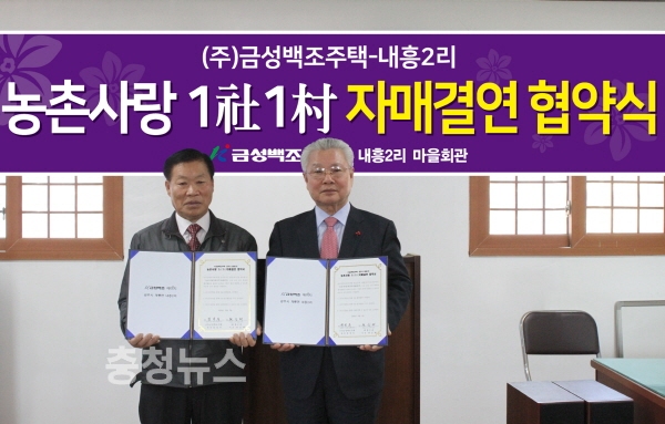 (주)금성백조주택 정성욱 회장이 지난 2일(금), 공주시 계룡면 내흥2리를 방문하여 농촌사랑 1사1촌 자매결연 협약식을 맺었다.
