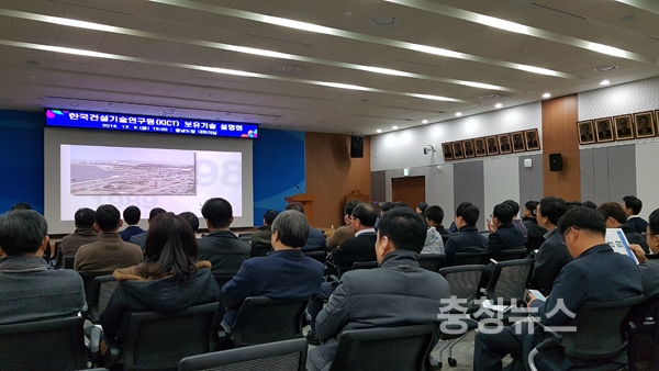 충남도는 9일 도청 대회의실에서 지역 건설업 활성화와 중소건설업체 기술 확보 지원을 위해 ‘한국건설기술연구원(KICT) 보유기술 설명회’를 개최했다.