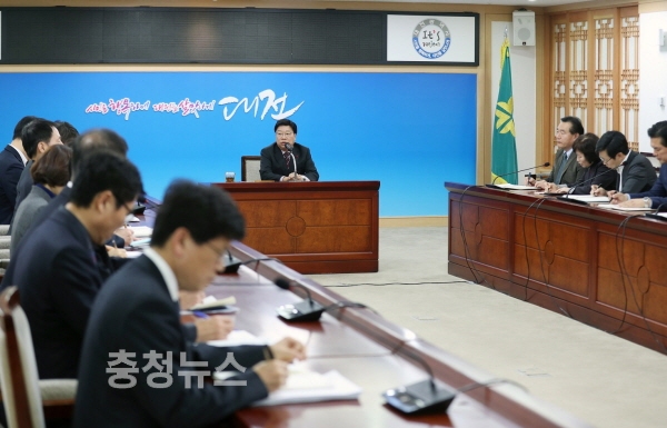 권선택 대전시장이 9일 시청 중회의실에서 국회의 대통령 탄핵소추안 가결에 대한 긴급 간부회의를 소집하고 탄핵정국에 따른 시정에 한 치의 흐트러짐이 없도록 공직자의 분발을 당부했다.