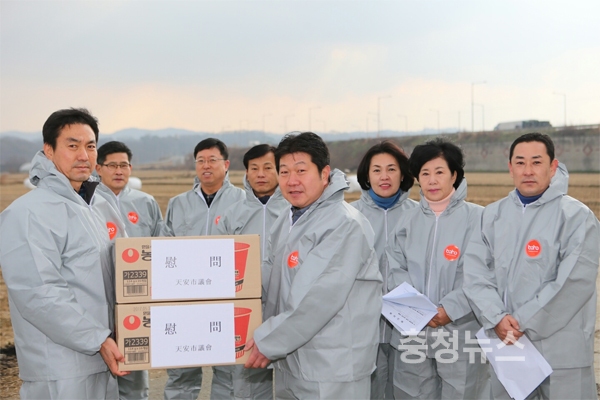 충남 천안시의회 총무환경위원회 인치견 위원장을 비롯한 유영오·정도희·김은나·엄소영·이종담 의원이 고병원성 AI 예방을 위해 산란계 살처분 현장인 풍세 보성단지를 방문하여, AI발생과 산란계 살처분 현황 등을 점검 후 근무자들을 격려했다.