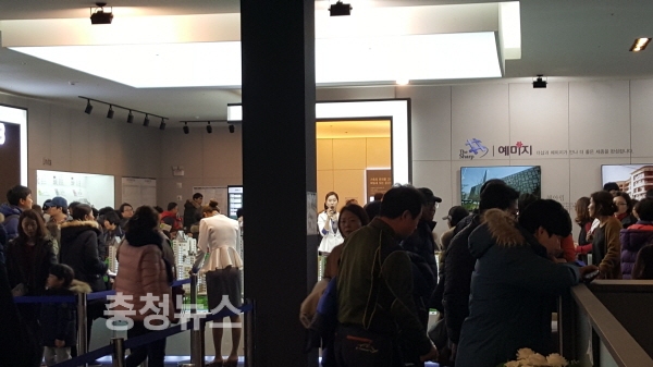 1시간 이상 줄을 길게 서있는 등 아파트 분양 열기가 후끈