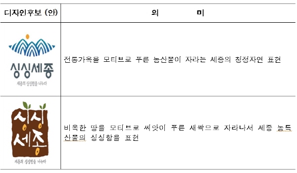 세종시는 여러 개의‘싱싱세종’디자인 중에서 최종 후보(안) 2개를 선정했다.