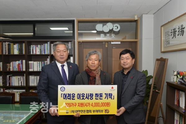 (사)대한한돈협회 부여지부(회장 김경수)는 지난 12일 어려운 이웃들과 소외계층을 돕기 위한 이웃사랑 한돈 458kg(시가 400만원)을 부여군에 기탁해왔다.