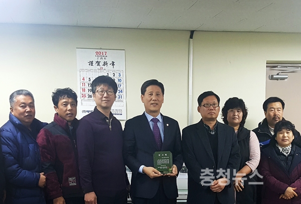 대전 유성구 송강동 청솔아파트 입주자대표회의가 16일 주민들의 주거환경 개선을 위해 노력한 새누리당 유성구의회 이희환 의원(의회운영위원장)에게 감사패를 전달했다.