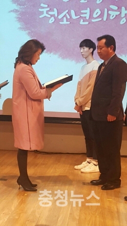 부여군청소년 수련원 이사장상 수상 장면