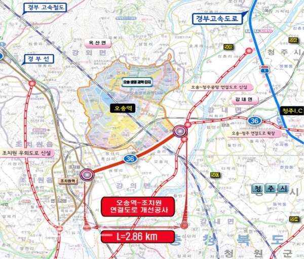 이번 ‘조치원~오송역 연결도로’ 개량 사업이 완료되면, 국도 36호선의 상습 지정체 구간이 크게 개선되어 인적·물적 교류가 늘어나고 양 지역의 균형발전에 크게 이바지 할 것으로 전망된다.
