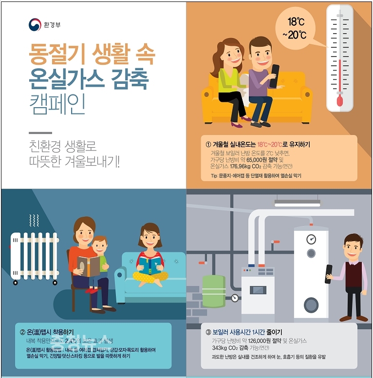 주요내용은 ▲겨울철 실내온도 18~20℃로 유지하기 ▲온(溫)맵시 착용하기 ▲보일러 사용시간 1시간 줄이기 ▲에코드리이빙(친환경운전)하기 ▲대중교통 이용하기 등이다.