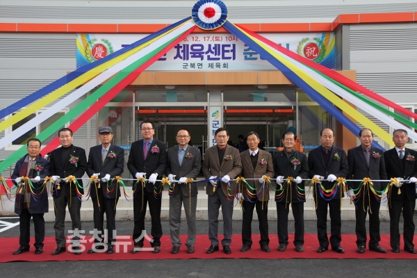충남 금산군은 17일 군북면 현장에서 박동철 군수를 비롯한 이상헌 군의장, 주민, 족구동호인 등 300여명이 참석한 가운데 ‘군북면 체육센터’ 준공식을 가졌다.