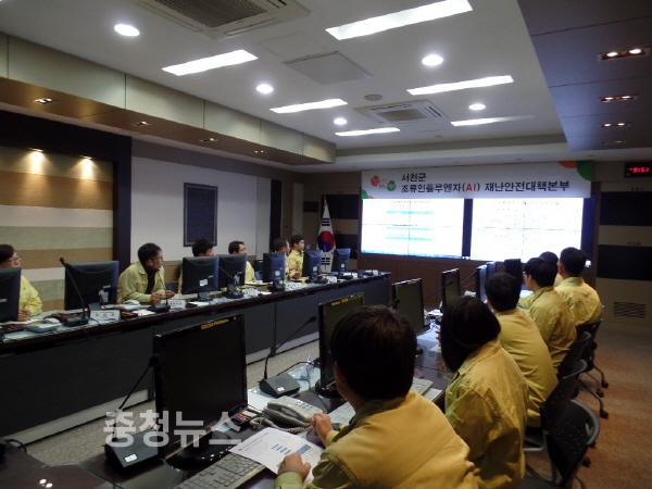 충남 서천군(군수 노박래)은 조류인플루엔자(AI) 확산 방지를 위해 농림과 주관으로 운영되던 기존 ‘AI가축방역대책본부’를 ‘AI재난안전대책본부’로 확대 운영한다고 밝혔다.