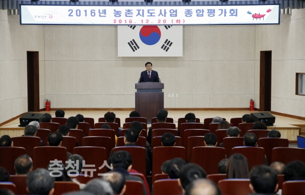 충남 태안군이 지난 20일 농업기술센터 교육관(창조관)에서 한상기 군수를 비롯, 각 읍·면 농촌지도자회장, 생활개선회장, 농업경영인회장, 품목별연구회장, 2016 시범사업 농가 등 170여 명이 참석한 가운데 ‘2016 농촌지도사업 종합평가회’를 개최했다.