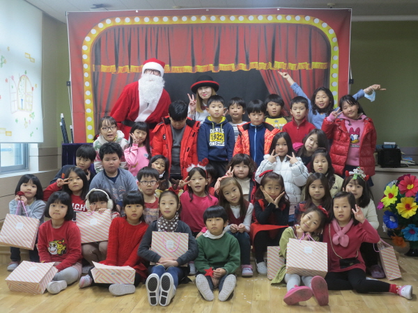 놀란 토끼눈 마냥 신기롭게만 바라본 마술공연에 이어 캐롤을 부르고 있을 무렵 무대막에서 불쑥 나온 산타가 소정초 학생들에게 선물을 풀어 놓았다.