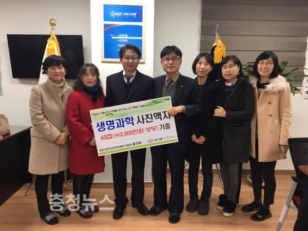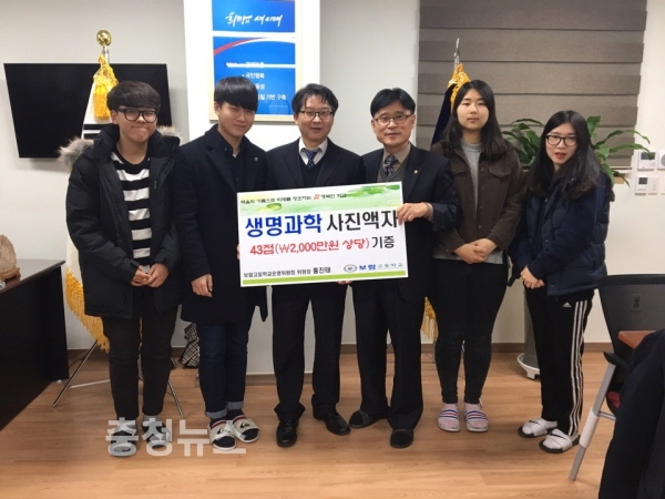 보람고등학교(교장 최성식)는 지난 20일 보람고 학교운영위원회 위원장인 홍진태 교수(충북대 약학대학, 충북산학융합본부장)로부터 생명과학 사진과 2천만원 상당의 명화 액자 43점을 기증 받았다.