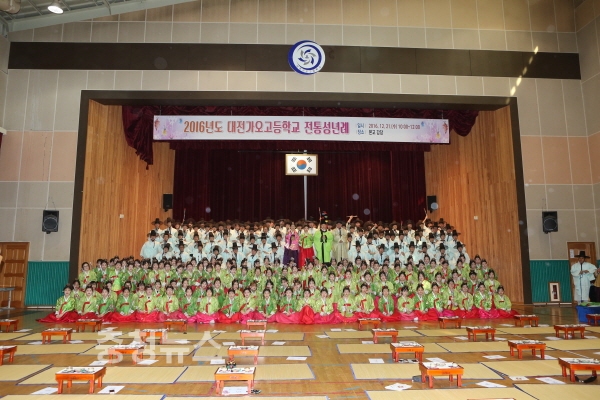 대전가오고등학교(교장 정온경)는 21일 오전 10시부터 약 2시간동안 학교 대강당에서 3학년 학생 307여명을 대상으로 대전평생학습관의 주최 하에 전통 성년례를 진행했다.
