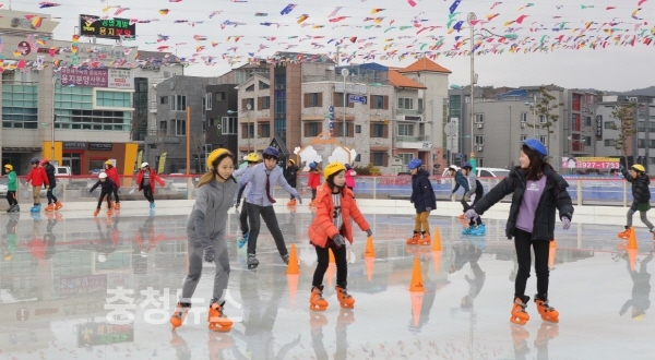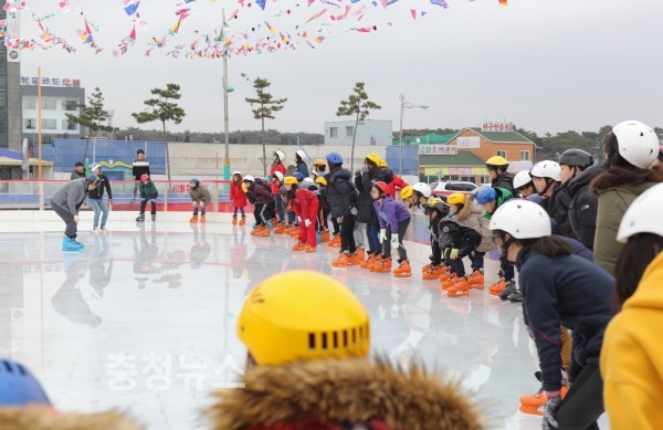 해수욕장 중심부에 있는 머드광장에 1500㎡의 아이스링크가 만들어져 이달 16일부터 내년 2월까지 겨울스포츠 명소로 거듭나고 있다.