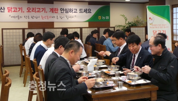 충남농협 임직원들은 그동안에도 매주 수요일은 닭과 오리를 활용한 식단을 이용해 왔는데, 앞으로는 주 2회~3회 이상 닭고기와 오리고기 식단을 구성해 가금류 소비촉진에 힘을 보태기로 하였다.