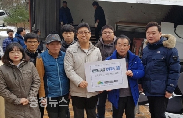 산림청 산하 산림복지 전문기관인 한국산림복지진흥원은 23일 강원도 춘천에 위치한 구세군소양지역아동센터 등 사회복지법인 11곳에 책상 등 가구(1t 차량 6대 분량) 전달식을 가졌다.