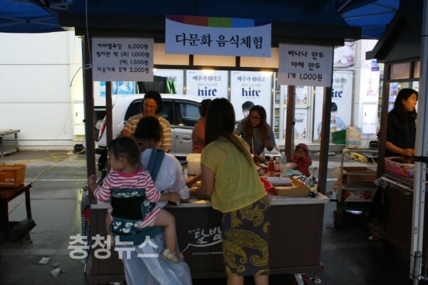 특히 다문화, 지역상인, 시장상인들이 한데 어우러져 40개의 매대에서 수제음식과 상품을 판매해 전통시장 활성화에 힘을 실었다.
