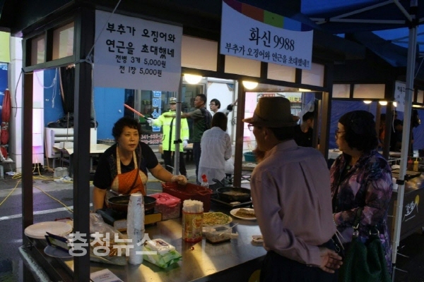 부여 새시장 2층에 청년시럽이 있다면 광장에는 ‘백마강 달밤시장’이 있었다. 2014년 행정자치부 공모사업으로 선정되어 충청권에서는 처음으로 개장한 백마강 달밤시장은 관광객들과 군민들이 많이 찾는 주말 위주로 시장을 개설해 운영의 효율성을 높였다.