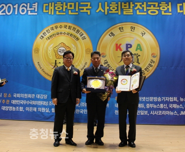 유기준 아산시의회(더불어민주당, 배방,탕정) 의원이 지난 24일 오후 3시 국회의원 회관 대강당에서 개최된 “제4회 2016년 대한민국 사회발전공헌대상“시상식에서 지방자치 의정 발전 부문 대상을 수상했다.