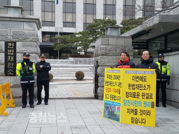 당진시의회 이종윤 의장은 26일 서울 헌법재판소 앞에서 당진평택항일원 당진시 관할 당위성 호소를 위한 1인 피켓시위 활동을 벌였다.