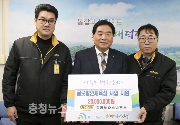 글로벌인재육성사업은 저소득층 학생들의 동등한 교육기회 제공을 통해 나눔의 복지사회를 구현하고 학생들의 잠재력과 바람직한 가치관을 키워주는 인재육성을 위한 대덕구만의 특수시책으로 ㈜아트라스비엑스에서는 지역사회공헌 일환으로 2012년도부터 5년 동안 매년 2,000만원씩(총 1억 원)을 기탁해 오고 있다.