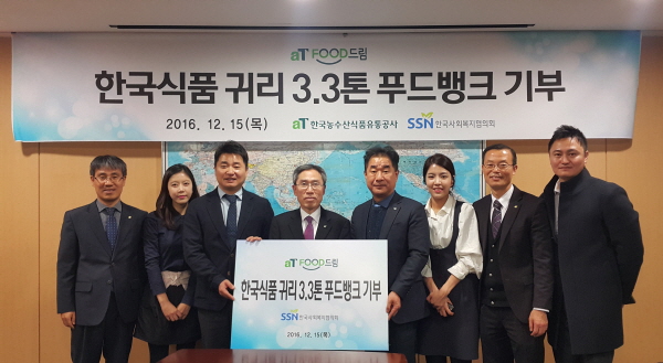 「aT FOOD드림」은 참여기업체에서 생산한 신선농산물, 가공식품 등 다양한 농식품을 매월 복지단체에 택배를 통해 배송하는 신개념 사회공헌활동 프로그램으로, 올해 6월부터 12월까지 총770회의 기부가 이루어졌다.