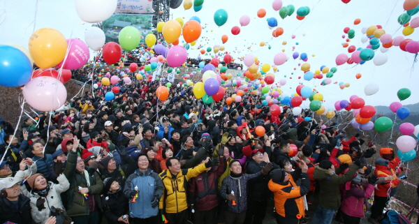 유성에서는 유성구 산장산에서 정유년 새해 지역 주민의 행복과 안녕을 기원하는 해맞이 행사가 개최됐다.
