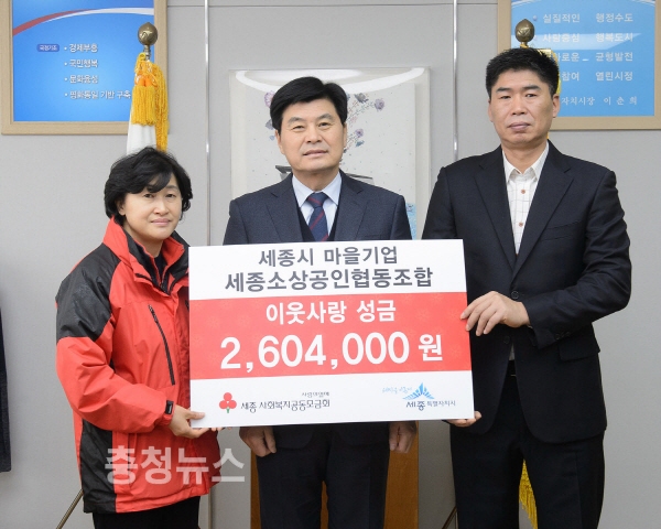 세종특별자치시(시장 이춘희) 마을기업인 ‘세종소상공인협동조합(이사장 노정섭)’이 지난 30일 이웃돕기 성금 260만원을 세종사회복지공동모금회에 전달했다.