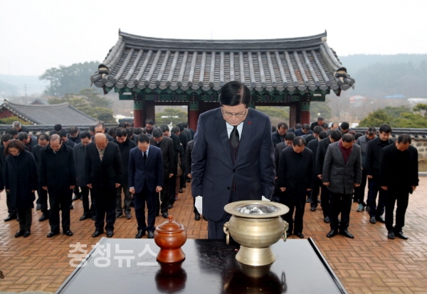 한상기 태안군수가 새해를 맞아 군 공직자와 군의원 등 100여 명과 함께 지난 1일 원북면 반계리에 위치한 옥파 이종일 선생 생가지를 방문하여 신년참배를 실시하며 정유년 새해 첫 일정을 소화했다.