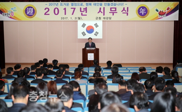 한상기 태안군수는 2일 “정유년을 맞아 태안군의 발전과 군민의 행복을 앞당길 수 있도록 창의와 긍정의 사고 속에서 군민과 약속한 ‘행복한 군민 시대’ 실현에 한층 더 매진해 군정을 추진할 방침”이라고 밝혔다.