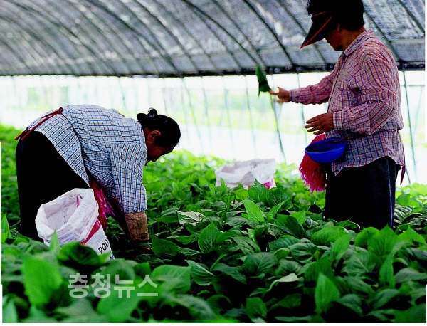 각 읍면지역 2600여 농가(284㏊)가 깻잎농사에 참여하고 있으며 가구당 평균소득은 2000여 만원에 달한다.