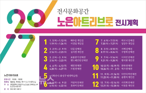 대전 유성구(구청장 허태정)는 노은도서관 1층에 마련된 노은아트리브로의 올해 주요 전시계획을 소개했다.