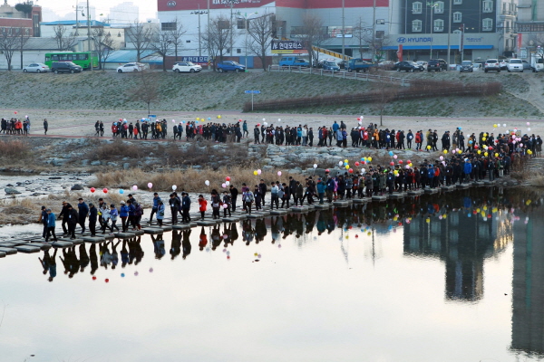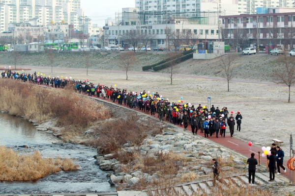 참석자들은 유등천변을 함께 걸으며 덕담을 나누고, 코스 중간에 마련된 새해 소망 풍선 날리기, 난타공연 등 이벤트에 참석해 즐거운 시간을 가졌다.