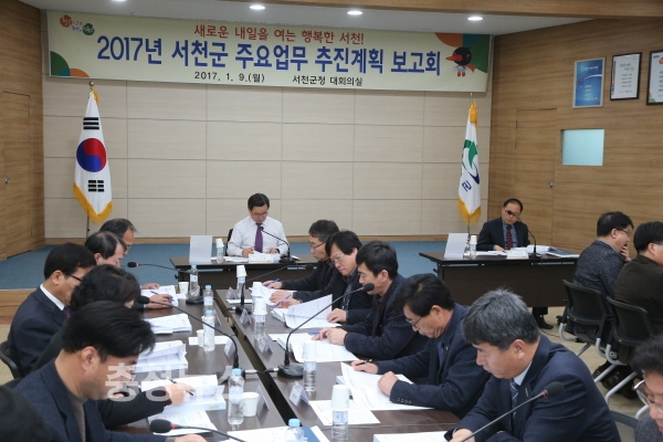 노박래 서천군수가 9일 군청 대회의실에서 ‘새로운 내일을 여는 행복한 서천’의 비전을 실현하기 위한 ‘2017년 주요업무 추진계획 보고회’를 개최했다.