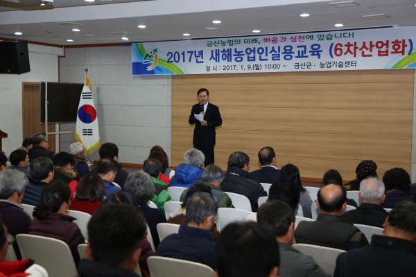 금산군이 농업․농촌 환경 변화에 대응한 농업인 의식과 기술력을 향상시키기 위해 이달 9일 6차산업화 교육을 시작으로 2017년 새해농업인 실용교육을 진행한다.