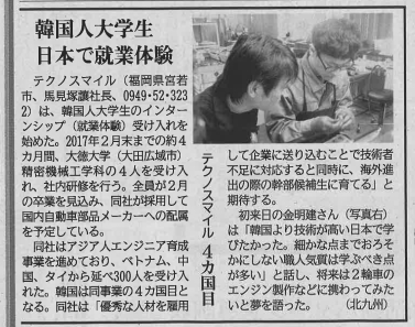 니혼케이자이 및 요미우리, 아사히, 마이니치 3대 일간지 경제부와 함께 ‘일본 3대 산업경제신문’으로 불리는 ‘일간공업신문’에 “한국인 대학생 일본에서 취업체험”이라는 기사제목으로 대덕대학교(총장 김상인) 정밀기계공학과가 소개되었다.