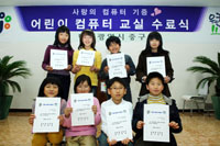 대전시 중구는 지난 2일 3시에 중구청 후생관에서 '어린이 컴퓨터교실'수료식을 가졌다. 특히 수료식에서는 지난 1월 8일부터 저소득층 자녀 54명을 대상으로 실시한 참여 학생중에 컴퓨터를 소유하고 있지 않는 학생 8명에게 무료로 컴퓨터 8대를 전달했다. 저작권자 © 충청뉴스 무단전재 및 재배포 금지 장영래 기자 다른기사 보기 기사가 마음에 드셨나요? 충청뉴스 좋은 기사 후원하기 1,000원 3,000원 5,000원 10,000원 30,000원 50,000원 직접입력 비회원 약관동의하기 ※ 소중한 후원금은 더 좋은 기사를 만드는데 쓰겠습니다.