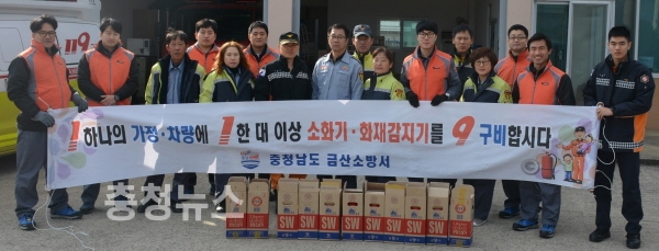 한국타이어(대표이사 서승화) 동그라미 봉사단은 금산소방서 의용소방대원들과 함께 10일 충남 금산군 제원면 소재 610가구를 대상으로 소화기 전달과 단독경보형 감지기를 설치로 훈훈한 감동을 주었다.