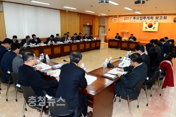 충남 홍성군은 2017년 정유년을 맞아 10일 군청회의실에서 김석환 군수와 하광학 부군수를 비롯한 각 실·과장, 직속기관·사업소장 및 군정자문위원 등이 참석한 가운데 2017년 주요업무계획 보고회를 개최했다.