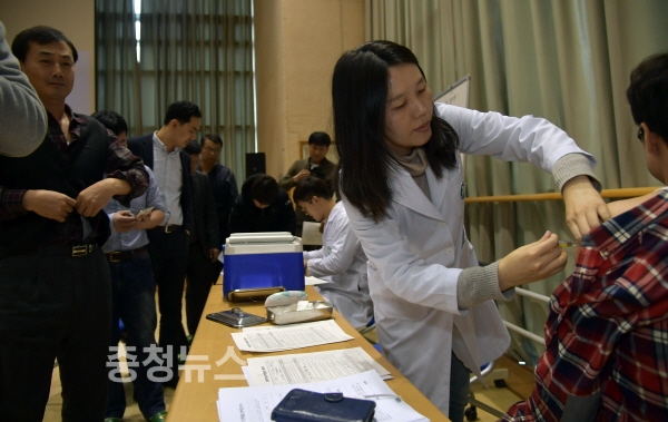 아울러 11일 관내 AI양성농가 발생시 24시간 이내 즉각적인 살처분이 완료 될 수 있도록 예비 인력 150명을 선발해 조류인플루엔자 인체감염 사전교육을 실시, ▲AI 인체감염 예방수칙 ▲관리대책 ▲AI 검체채취 ▲개인보호구 착탈의법 등에 대한 강의와 인플루엔자 예방접종을 실시했다.