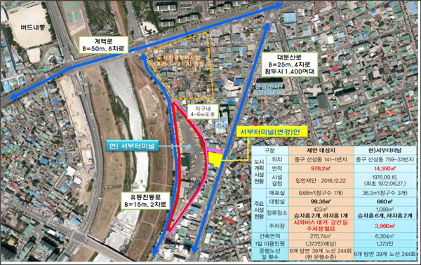지속가능한 교통체계를 위한 대전광역시 교통정비중기계획 등에서 통합터미널로 관리하고자 하는 상위계획과 부합하지 않고 대상지와 주변 환경을 고려한 입지 여건 상 도시관리계획 결정 기준에 불부합하며 지역간 연계교통수단 등 이용시민의 접근성이 부족하고 면적 또한 현재 시설의 6.7% 수준으로 매우 협소하여 이용객 및 종사자 등을 위한 시설이 부족하고 차량 진․출입 및 여객 등의 이용에 상당한 불편과 안전상의 문제가 있을 것으로 예측되기 때문이다.