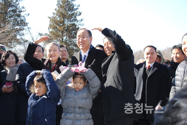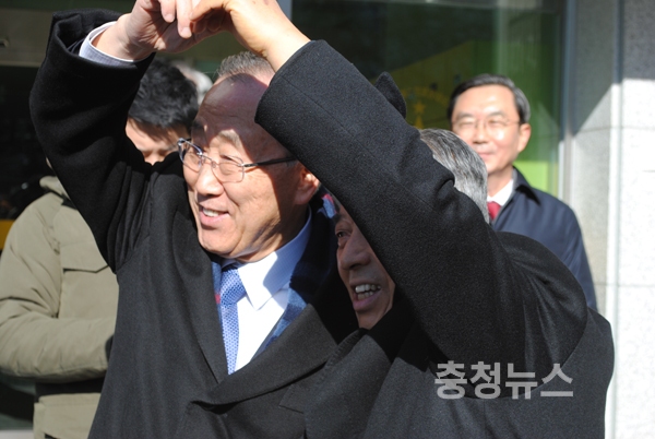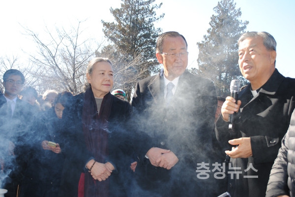 충청출신 반기문 前 유엔사무총장은 귀국후 14일 오전 고향인 충북 음성 선친 묘소에 참배한데 이어 충주로 달려갔다.