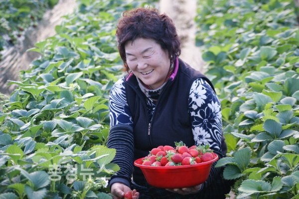 특히, 육묘생산에 전력해온 논산시 가야곡면 홍기자(60)씨는 35년동안 우리나라 고유 품종인 ‘설향’ 품종을 6개 비닐하우스에서 ‘토경재배’해 년간 7,200kg의 딸기를 생산 지역경제 활성화에 앞장서고 있다.