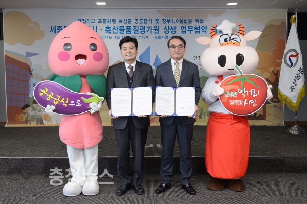 세종특별자치시 이춘희 시장은 학교 급식용 축산물의 안전관리 강화를 위해 16일 축산물품질평가원과 업무협약을 체결했다.