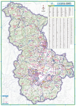 앞면에는 지역별로 도로명과 도로의 기․종점을 표기했고, 아파트, 마을회관, 각종 공공기관의 위치와 도로명주소, 버스승강장, 민방위대피소, 주요 산과 대표 관광지 등 생활정보를 수록해 공간지리정보를 최적화했다.