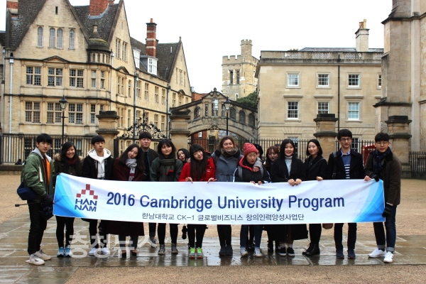 한남대 린튼글로벌비즈니스스쿨(이하 린튼스쿨) 학생들이 세계적 명문대학인 영국 케임브리지 대학에서 매년 방학 때 계절학기 수업을 수강해 화제가 되고 있다.