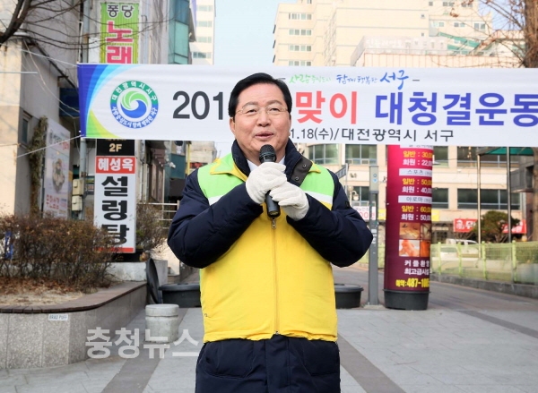 대전 서구 장종태구청장은 쾌적하고 깨끗한 설 명절을 맞이하고자 18일 갤러리아타임월드 주변에서 ‘설 맞이 대청결 운동’을 했다고 밝혔다.